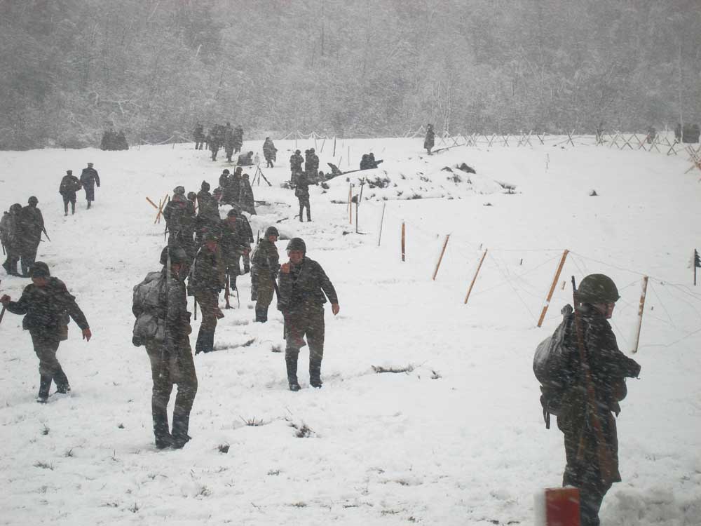 Участники реконструкции: солдаты , техника, ход боя