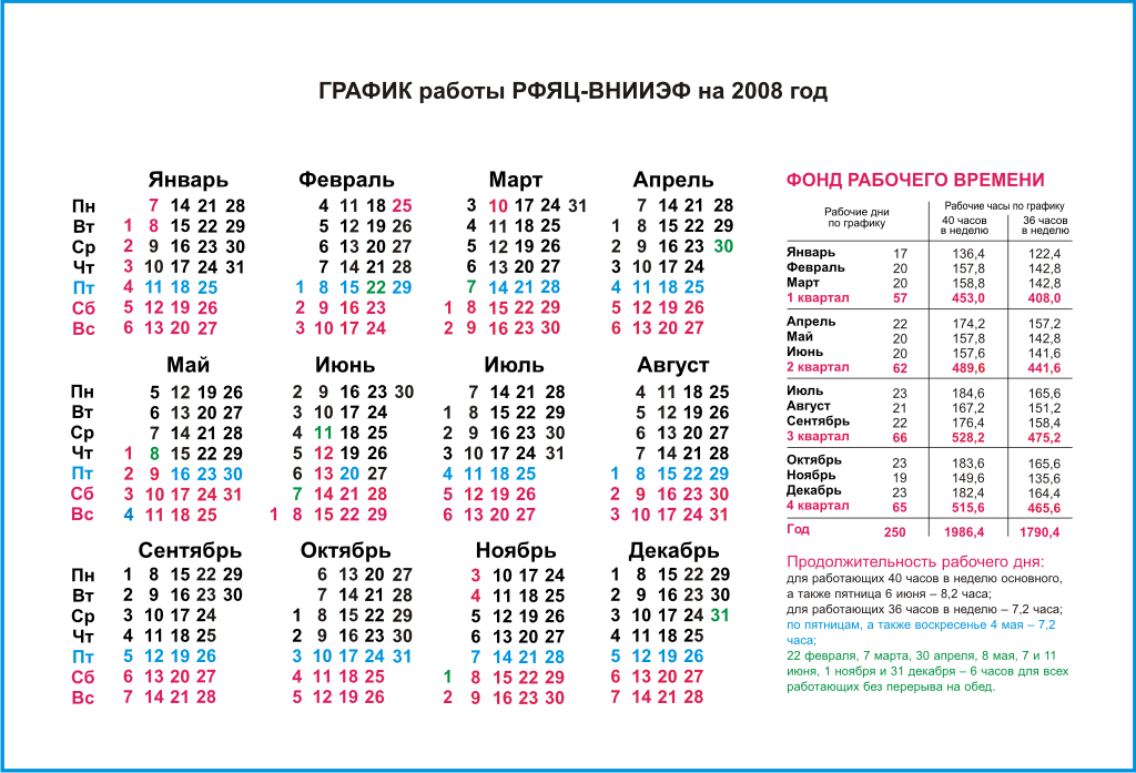 График рабочего времени ВНИИЭФ на 2008 год
