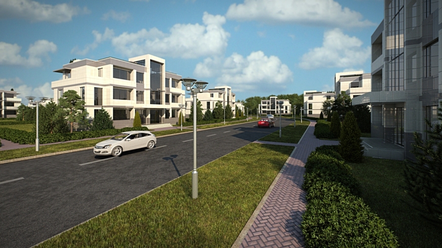 визуализация 3-этажных многоквартирных домов в пойме реки Сатис
