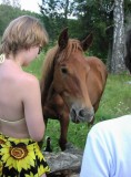 Свежий воздух обеспечивал наличие зверских аппетитов; натянутая пленка и установленные палатки — защиту от возможного дождя и ночлег; чистенькие, симпатичные окрестности и пришедшая поглазеть на разбитый лагерь добрая лошадка — удовлетворение эстетических чувств и тяги к природе. Правда, вторая лошадка, пасшаяся неподалеку с маленьким жеребенком, оказалась не такой доброй — она даже укусила за спину девушку, порывавшуюся покормить её драгоценное чадо хлебом. Тем не менее, и она была покорена — другой девушкой, умевшей ездить даже не неоседланной лошади и тут же применившей свои навыки на практике.