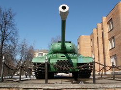 Танк ИС-2 возле Дворца пионеров, как можно видеть, уже покрасили в правильный цвет. Помимо этого, на башню нанесли символику: бортовой номер, знак «гвардия» и белого медведя на фоне красной звезды.