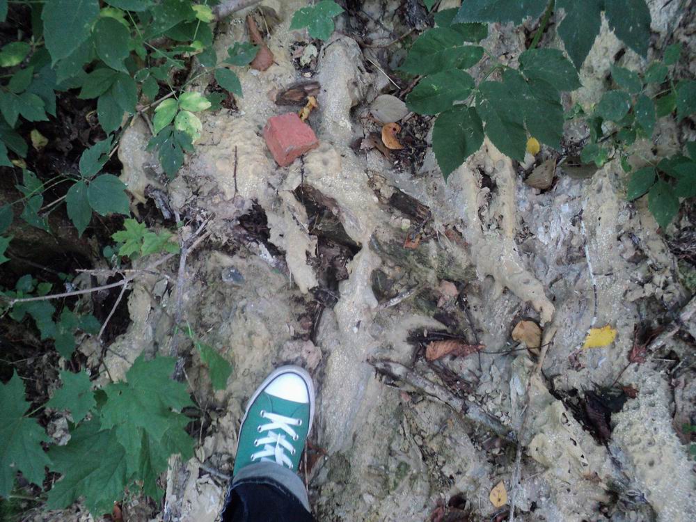 А тут посетители сайта письмо прислали. Ты, пишут, с заду зайди, там интересно! Зашёл — и камень с сердца упал. Россия-матушка! Они там с заду, видать, раствор прямо на склон выливают. От этого он, раствор, застыл красивыми такими вулканическими потёками. В общем, отлегло: не потеряли ещё корней, есть за что держаться!