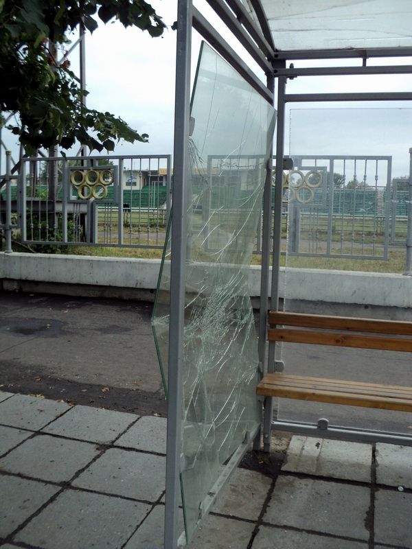 Проще говоря, если вокруг не нагажено, самому тоже не хочется. Поэтому кто-то из представителей городской интеллектуальной элиты решил привести задачу к первоначальной. Раскокал стекло на остановке. Теперь, как водится — воруй, убивай, далее по тексту.