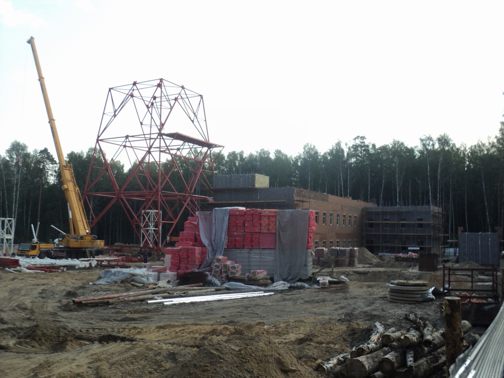 За всеми разговорами о строительстве новой телевышки как-то важность этого события притупилась. Сколько лет обсуждалось и с места не двигалось. А тут глядь — они себе там в лесу ударными темпами здание телецентра строят и уже первые фермы этой самой вышки собрали.