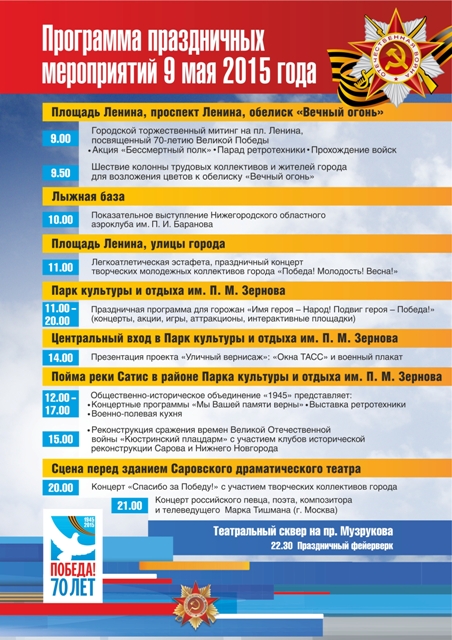 Программа праздничных мероприятий по празднованию 70-летия Великой Победы 9 мая 2015 г.: