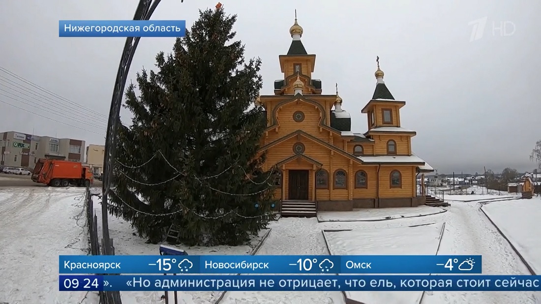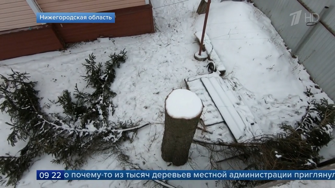Короче, женщина обвиняет местную администрацию в том, что она, администрация, стырила ёлку, которая произрастала на её личном участке. Пилили через забор, оставив торчать пенёк. Ёлка была обнаружена перед зданием очередного нормальным людям не нужного храма.