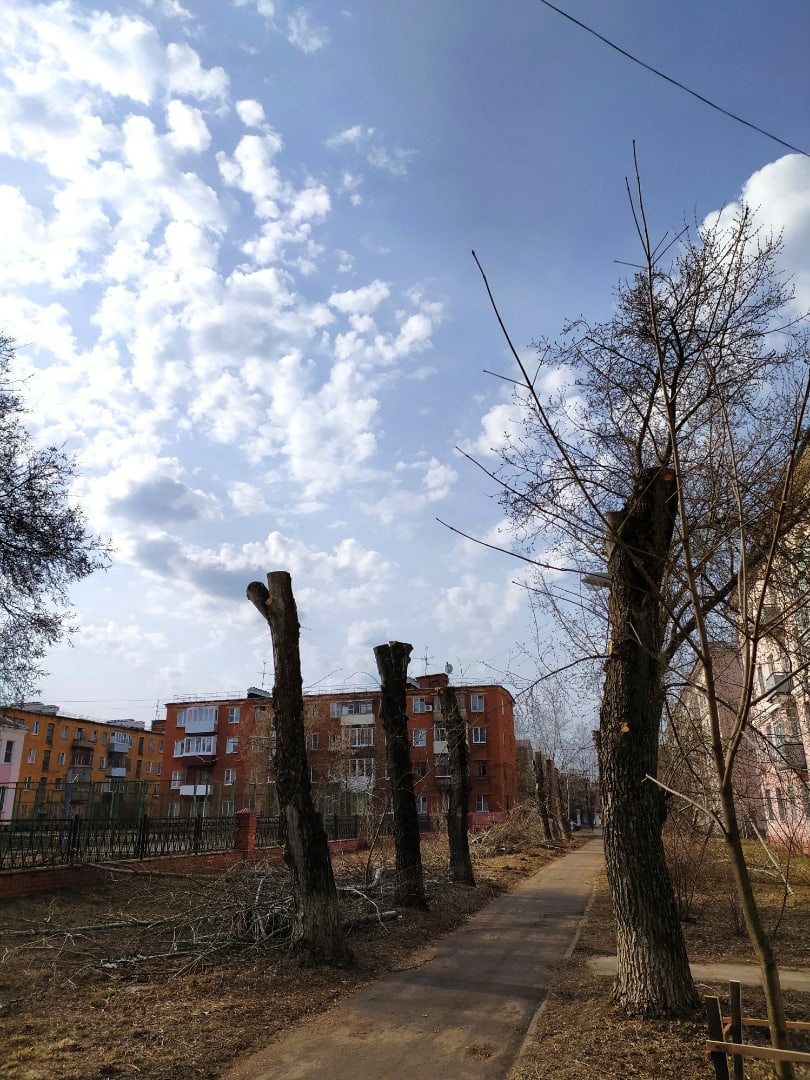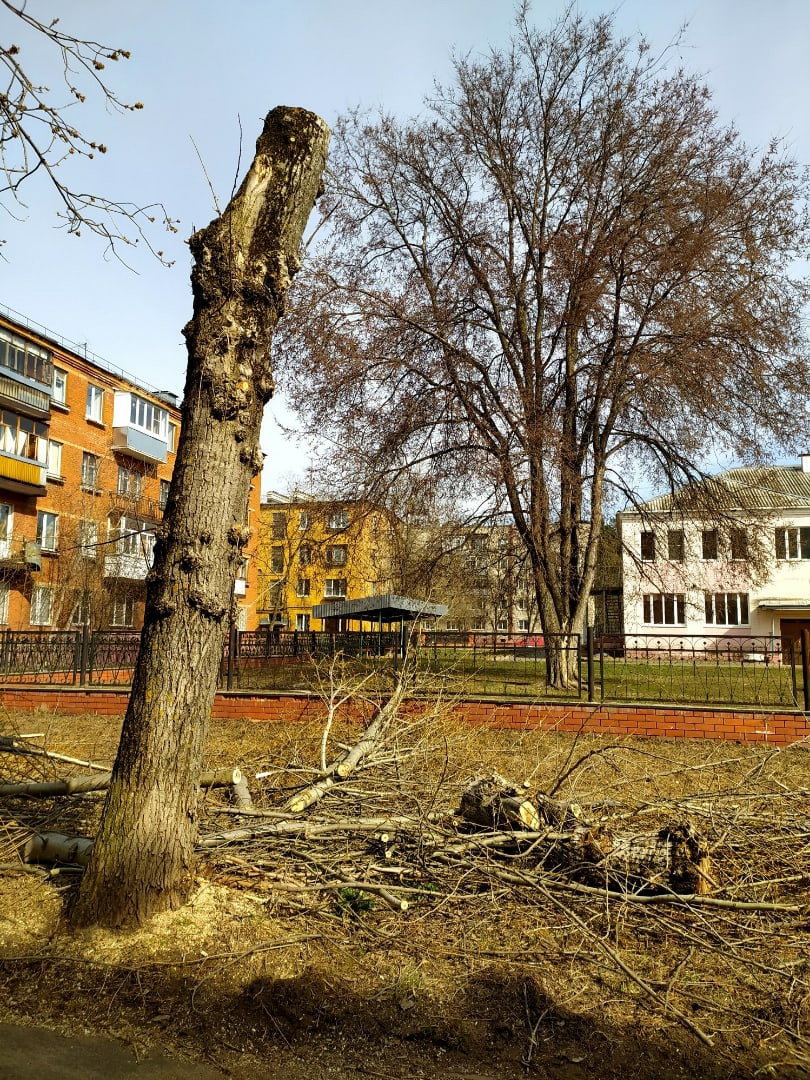 Думаете, хоть что-нибудь изменилось? Да щас. Деградация продолжается, и администрация города, которой глубоко наплевать на Саров, продолжает свою разрушительную деятельность по уничтожению озеленения города. На днях её клешни, а скорее, клешни нанятых ею подрядчиков добрались до улицы Шевченко.