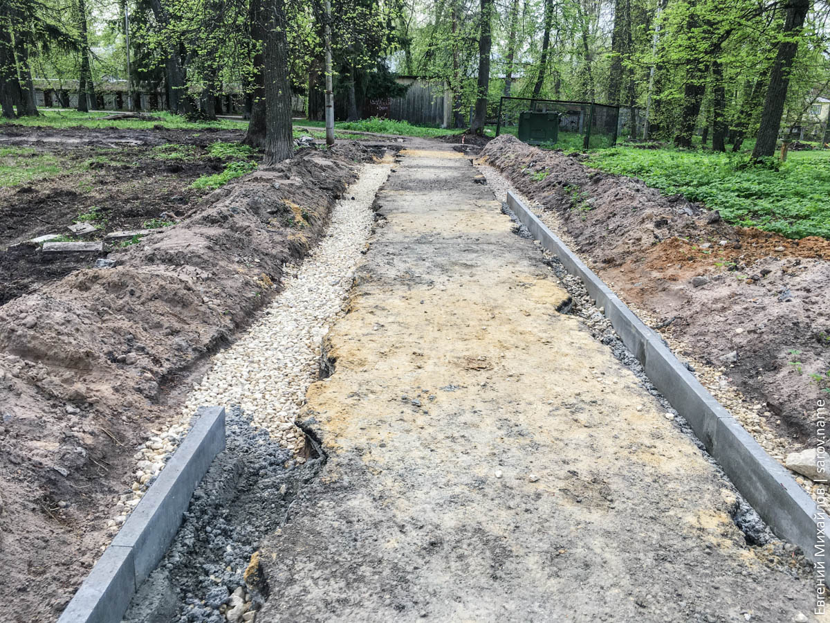 Продолжаются работы по благоустройству детского парка на ул. Сосина (кстати, ранее называвшей «ул. Красная»).