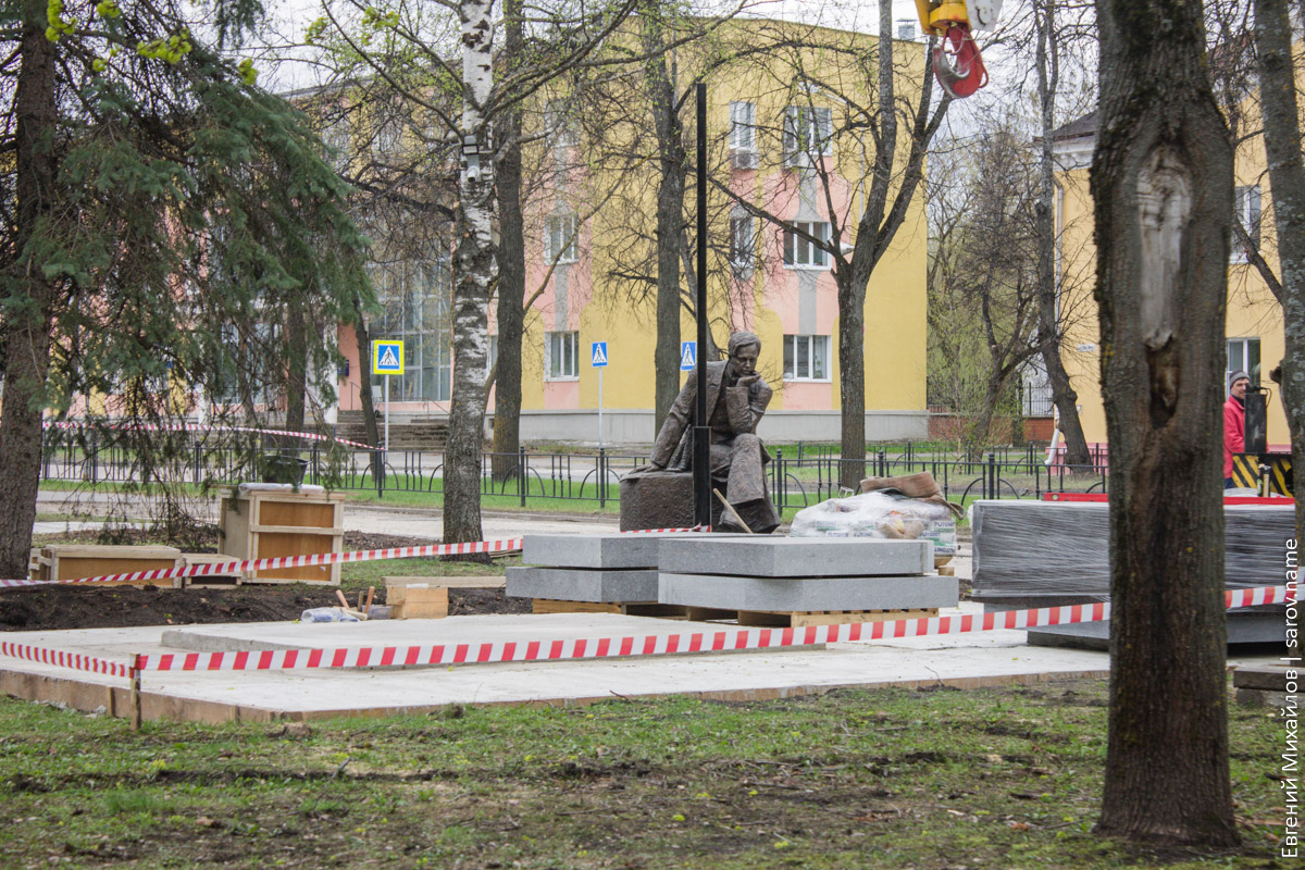В сквере за администрацией возле здания художественной галереи запечатлена установка памятника Андрею Сахарову.