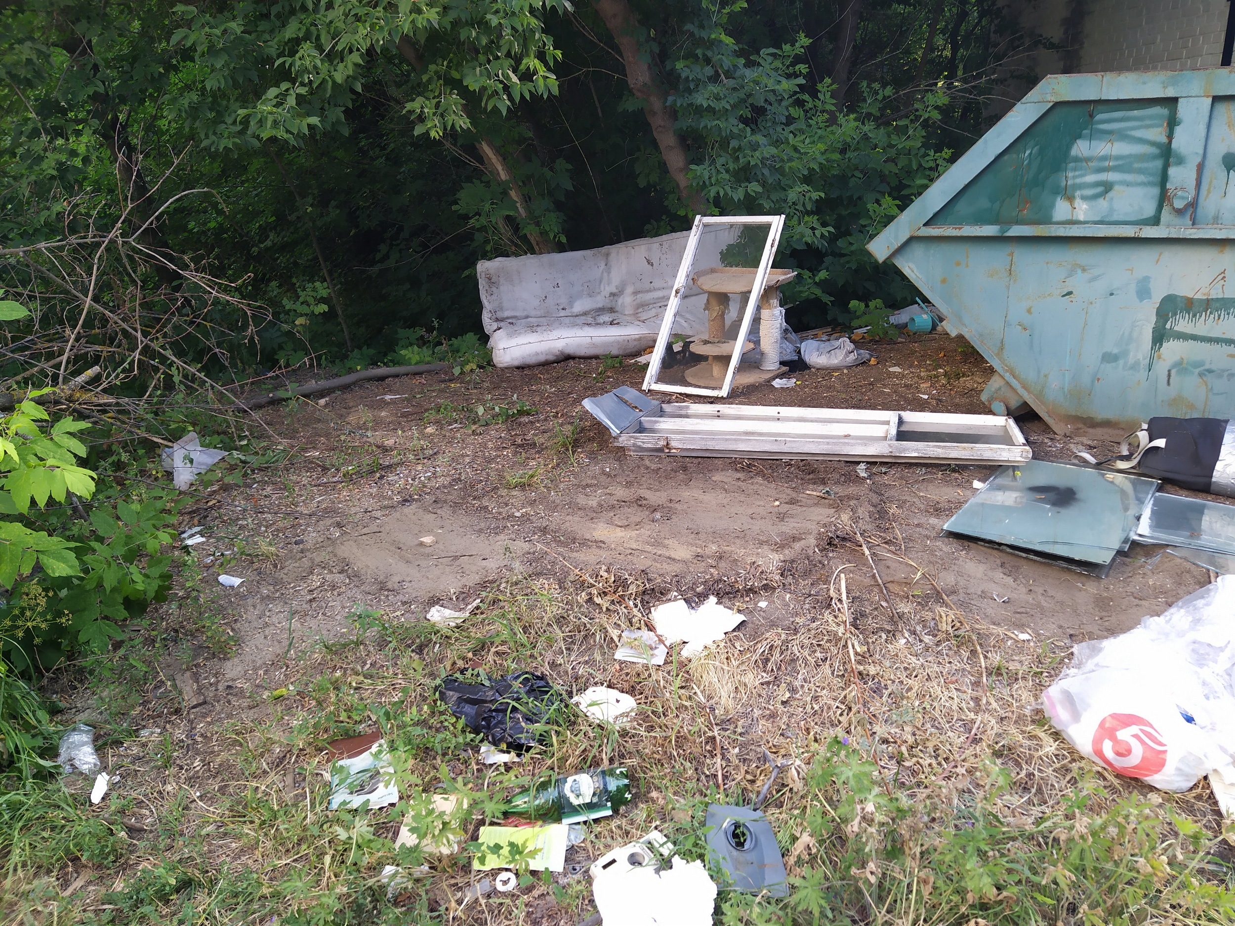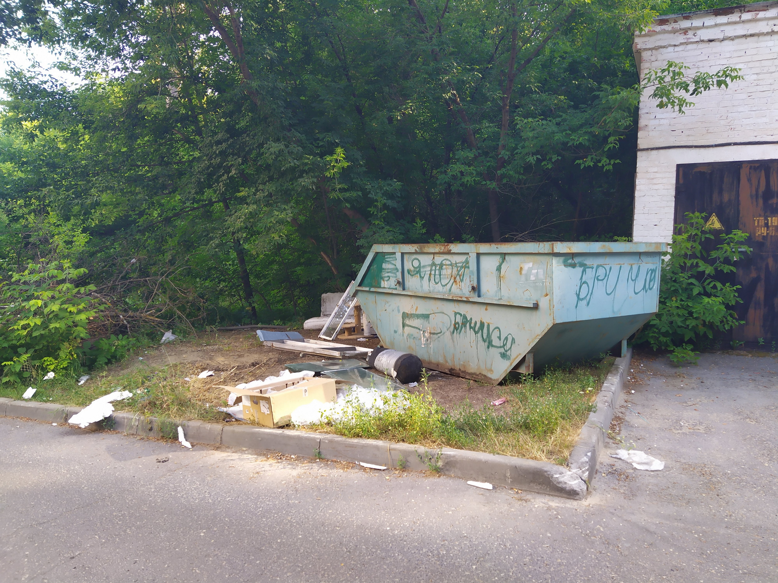 - Контейнер ставят как попало. То торчит на половину проезда, то кусты мнёт. Но хотя бы на уже намоленное место ставят. Предлагаю место облагородить с эстетической точки зрения и контейнер ставить аккуратно — перпендикулярно к основному проезду.