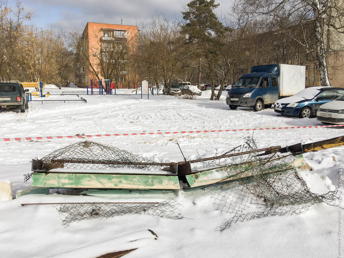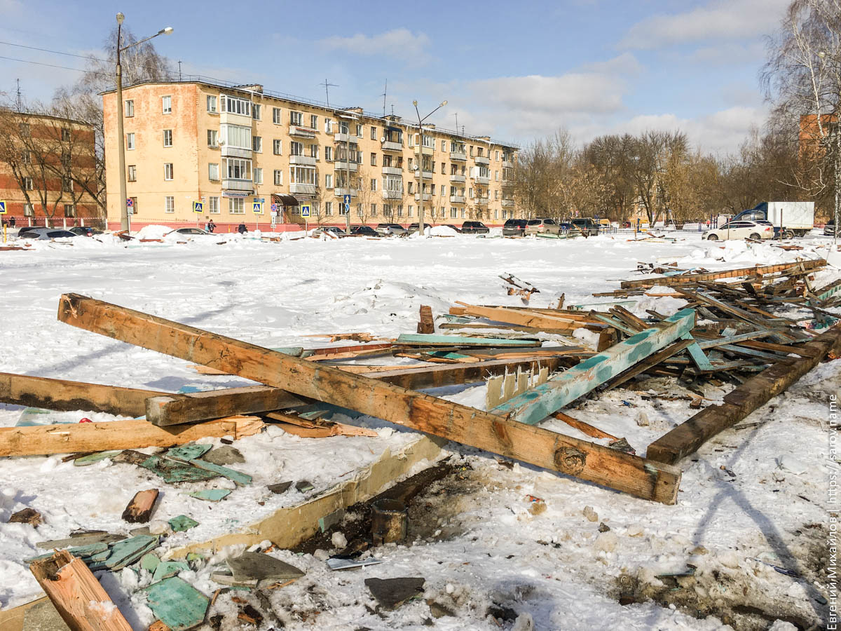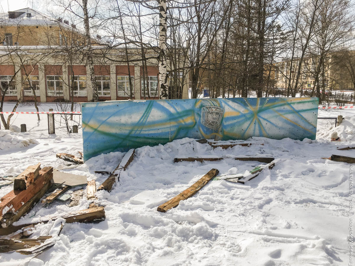 Начался слом хоккейной коробки «Сокол» на ул. Куйбышева, и borhomey посредством своего фотографического аппарата показывает, как это происходит.