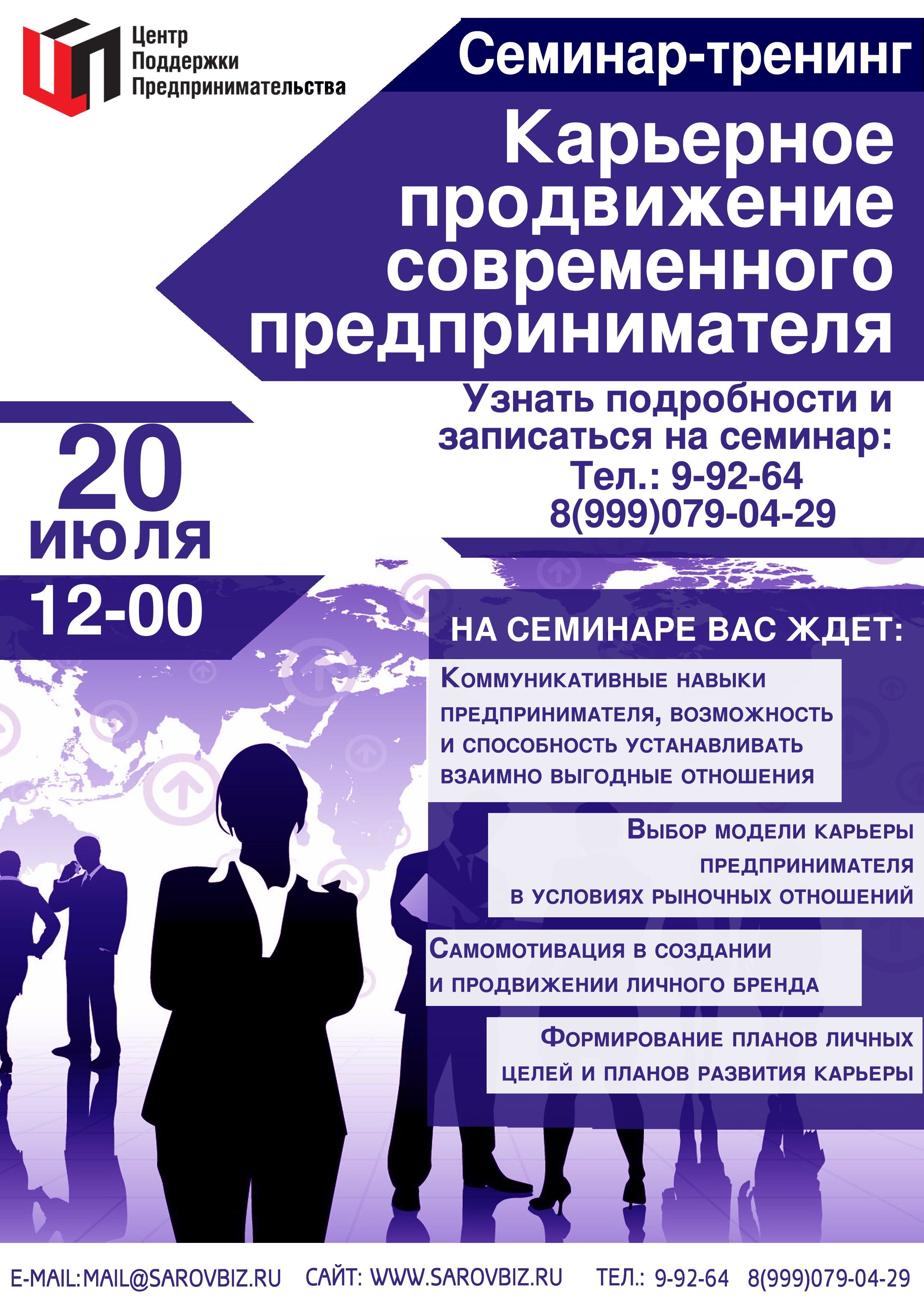 Свои предложения об интересующем семинаре Вы можете прислать на адрес электронной почты Центра поддержки предпринимательства: mail@sarovbiz.ru