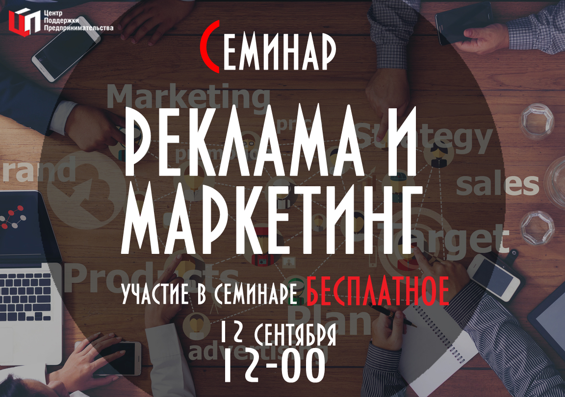 «Реклама и маркетинг» что это? Всем ли понятны эти термины? Как увеличить объем продаж? Ответы на эти вопросы Вы получите 12 сентября в 12−00 в Центре поддержки предпринимательства, посетив БЕСПЛАТНЫЙ семинар, посвященный этой теме.