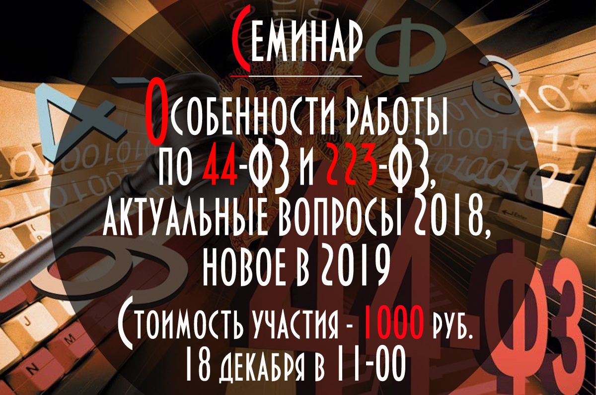 44-ФЗ и 223-ФЗ… Есть вопросы? 18 декабря в 11−00 в Центре поддержки предпринимательства состоится информационный семинар «Закупки по 44-ФЗ и 223-ФЗ»