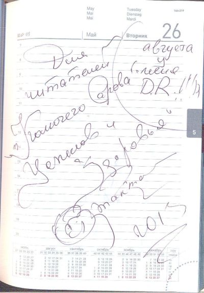 Буквально через несколько минут к нам подошел опрятный молодой человек с искренней улыбкой и попросил автограф для супруги.