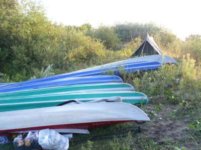 Во время погрузки начался ливень, однако с этапом сборки байдарок все справились блестяще. После того как разбили лагерь и поужинали, более тесно познакомились с замечательными молодежными экипажами из «ОКБМ Африкантов», которые оказались более опытными туристами, чем мы.