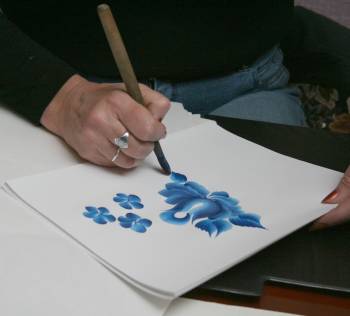 Всю работу по созданию нового изделия каждый умелец выполняет сам. Сначала создает эскиз, затем делает из гипса модель, отливает по ней рабочую форму. После подсушивания изделие попадает в первый обжиг (900 градусов), расписывается, глазируется и подвергается второму обжигу (1350 градусов). Если в росписи используется золото, понадобится и третий обжиг. Фантазия художника все же имеет некий предел, ведь чем больше приставных деталей, тем больше брака. И еще один немаловажный фактор: часто авторская роспись сложна в тиражировании. И модель, расписанную рукой художника, в массовом производстве узнать будет невозможно. Самым незамысловатым выглядит традиционный цветочный орнамент с плавным переливом кистевых мазков от голубого к темно-синему…