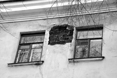 30 марта часть оштукатуренной стены этого дома обвалилась. Хорошо, что внизу никого не было. Дмитриева теперь боится находиться в квартире. Случись что — не успеешь выбраться.