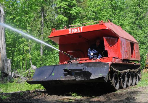 — У нас на вооружении имеется уникальная техника, — подчеркнул Александр Алексеевич Додонов. — Чего стоит наш пожарный танк! Он разработан во ВНИИЭФ в 1985 году и способен на многое. Например, проходить в труднодоступные места и тушить огонь из лафетного ствола, благо воды в его цистерне 12 тонн.