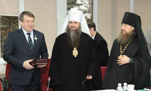 20 декабря на заседании Саровского Духовно-научного центра митрополит Нижегородский и Арзамасский Георгий вручил директору РФЯЦ-ВНИИЭФ Валентину Костюкову награду Святейшего Патриарха Всея Руси Кирилла орден РПЦ святого благоверного князя Даниила Московского.