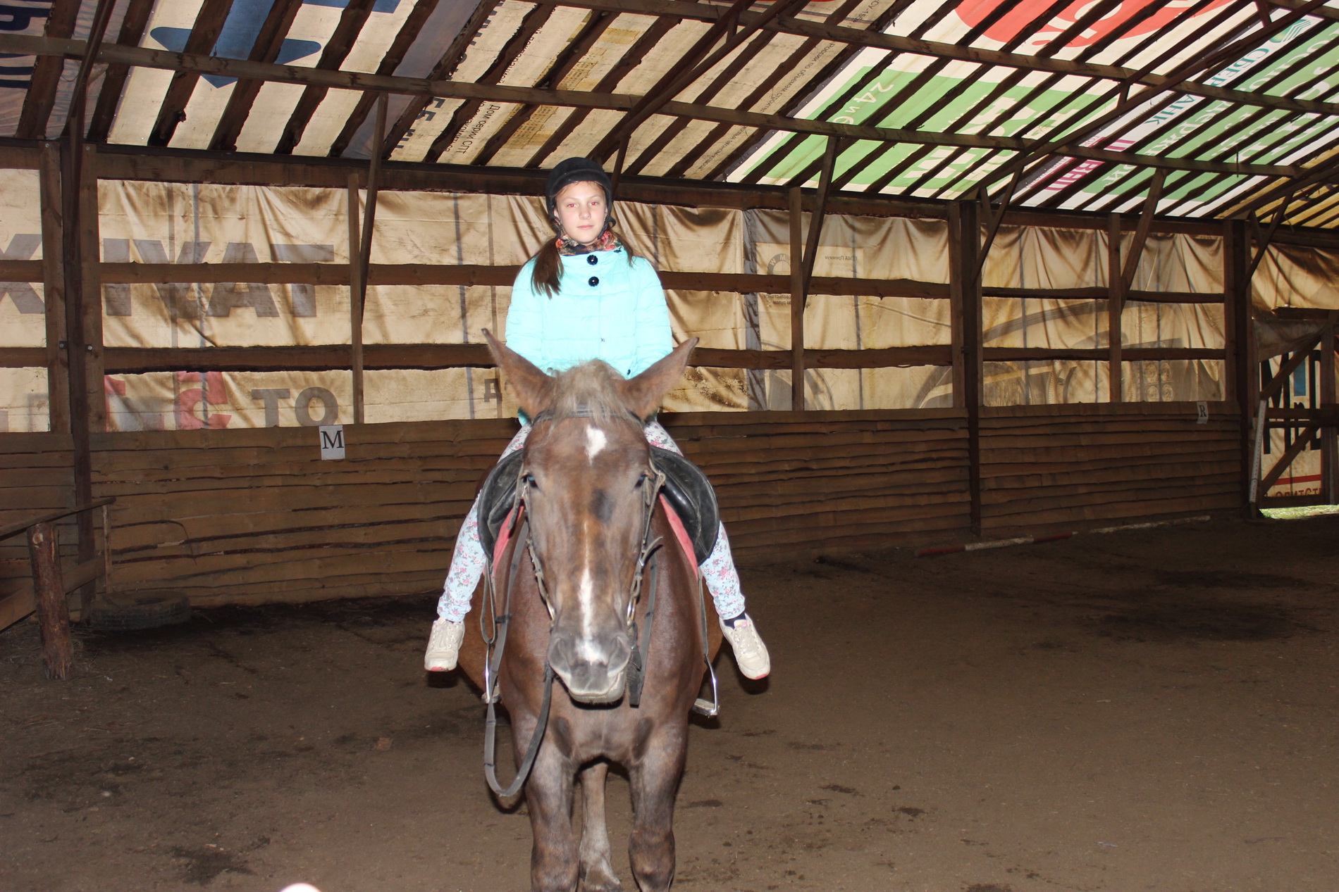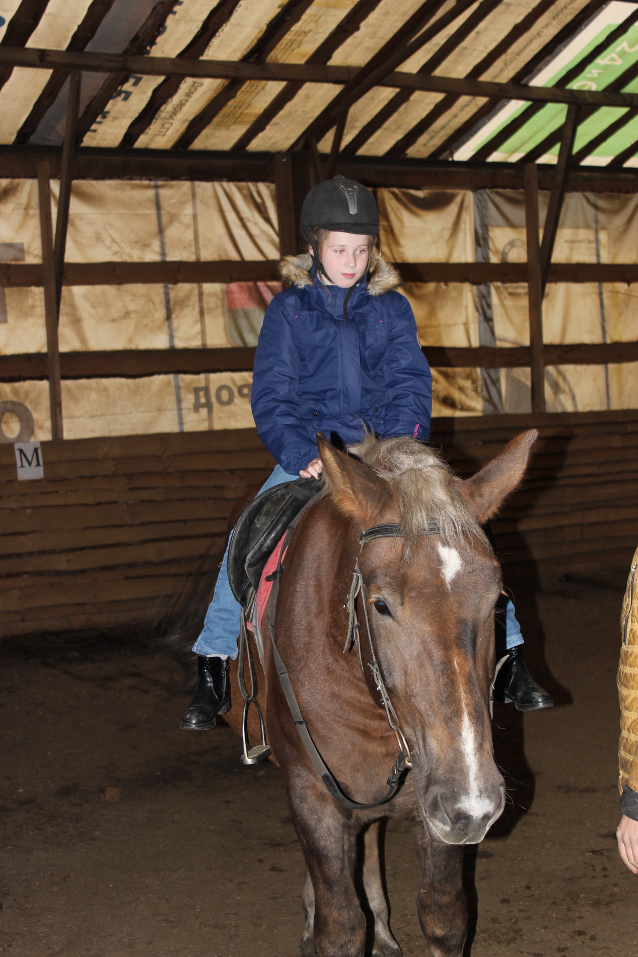 Экскурсия продолжилась на Конно-каретном дворе, где участники поездки получили первые навыки верховой езды. А тот, кто не решился сесть на лошадь, получили позитивный заряд, просто общаясь с животными.