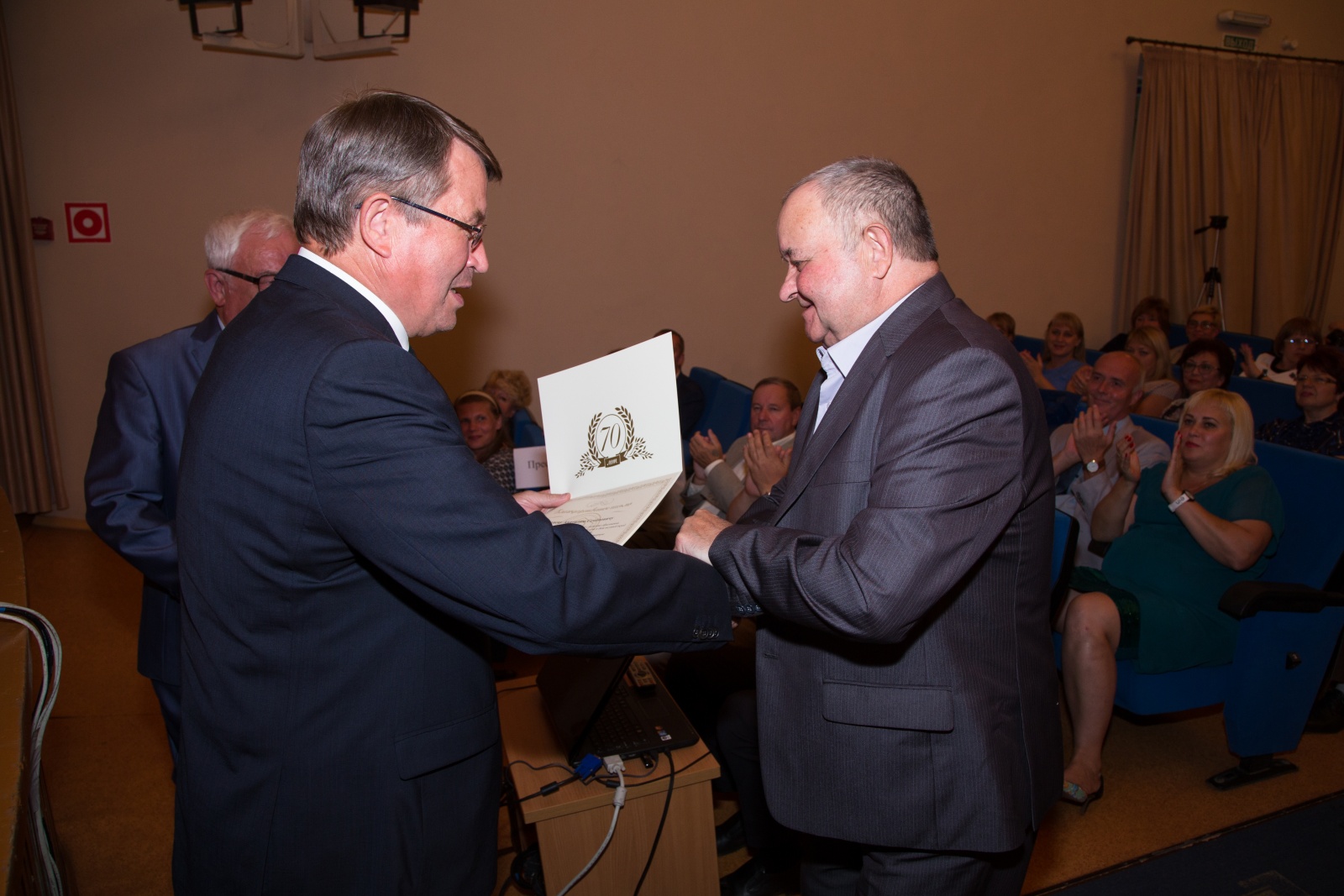 Вечер продолжился чествованием ветеранов и профсоюзных активистов Института. Иван Александрович и Валентин Ефимович вручили более 40 Благодарственных писем РПРАЭП. Всего в этот юбилейный год Благодарственными письмами отраслевого профсоюза награждены 186 членов профсоюза РФЯЦ-ВНИИЭФ.