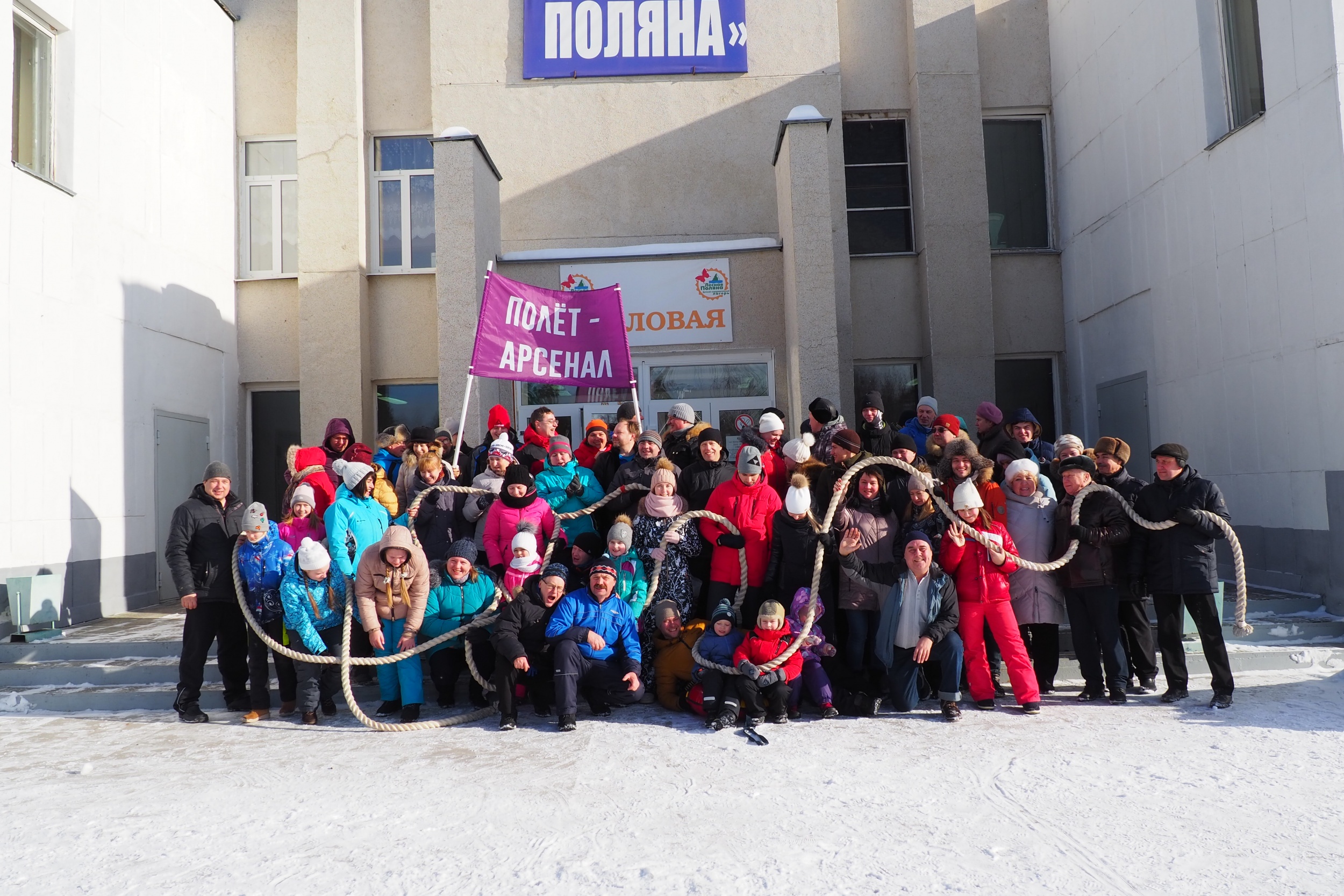 Начался спортивный день с перетягивания каната между командами «Арсенал» и «Полет». В этот раз сильнее оказалась команда «Арсенал». Сладкие призы достались всем участникам и активным болельщикам.