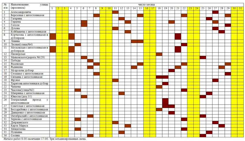 Департамент городского хозяйства и Дорожно-эксплуатационное предприятие согласовали график механизированной уборки улично-дорожной сети на март 2013 года.
