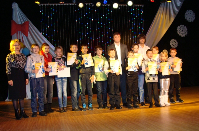 Вечер сразу начался с подарков. По итогам конкурса ДЮЦ «Лучший спортсмен» дипломы и памятные подарки-талисманы сочинской олимпиады отличившимся вручал на сцене директор Детско-юношеского Центра Александр Семёнович Сашков. Традиционно награждали по 6 номинациям.