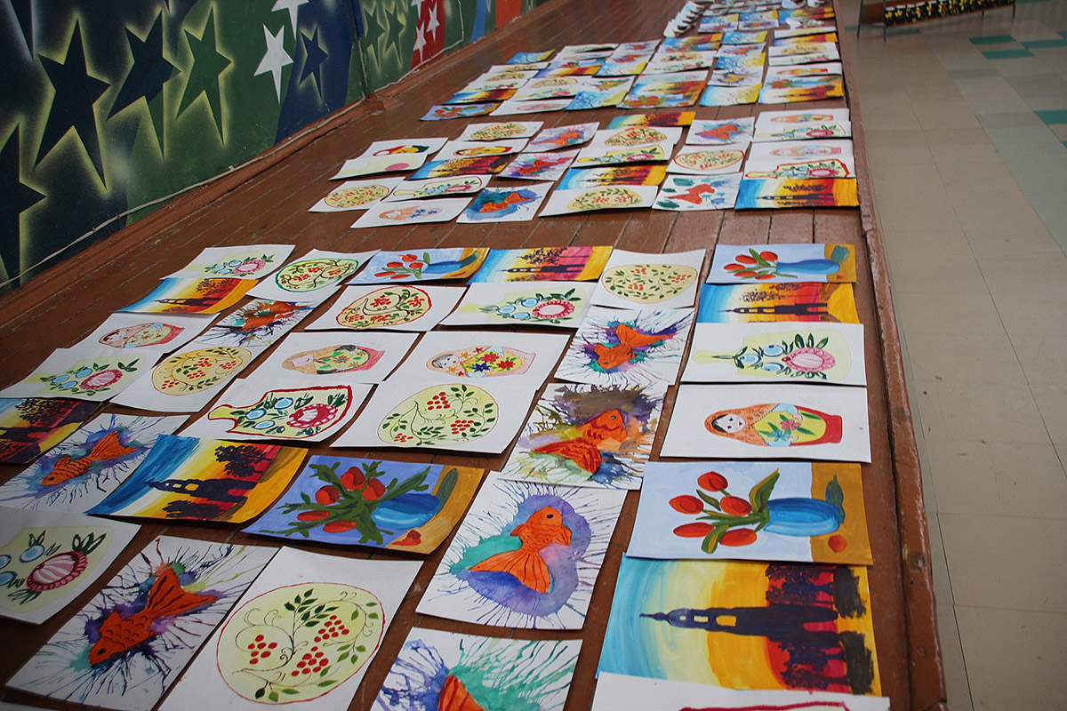 Викторины, ответы на вопросы «Что? Где? Когда?», складывание пазлов, составление цепочек слов, пение — всего нужно было пройти 10 станций. И вот приятная церемония награждения. К этому дню для ребят были подготовлены грамоты за активное участие во всех делах, сладкие подарки и их работы — рисунки, картины из пластилина, аппликации из ткани, керамические коты и котята.