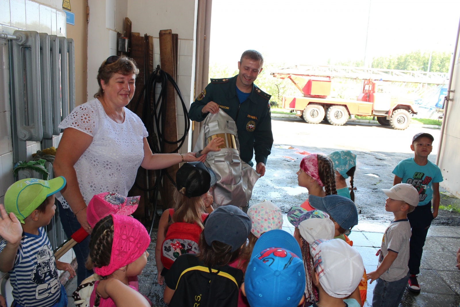 Ребятам показали боевую одежду пожарного и рассказали, что шьется не из обычной ткани, а из особой. Она не горит в огне и мало нагревается. На несколько минут дети смогли почувствовать себя огнеборцами, примерив боевую одежду пожарного. Дети с большим интересом слушали и задавали интересующие их вопросы. Далее сотрудники пожарной охраны продемонстрировали обучающий и познавательный мультфильм «Игра с огнем — Лукоморье», в котором детей призвали правильно обращаться с огнем, не играть с ним и строго соблюдать требования правил противопожарного режима в быту, и на улице. Воспитанники детского сада почерпнули много полезной информации из беседы с теми, кто ежедневно занимается тушением пожаров и спасением людей.