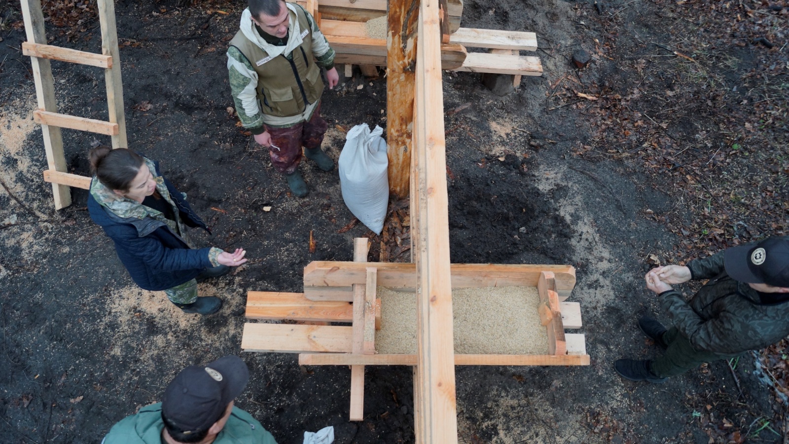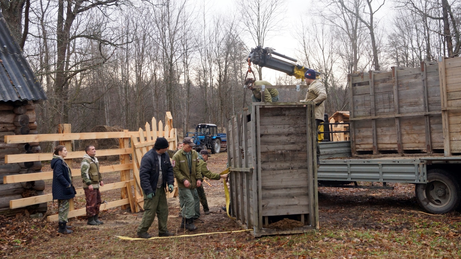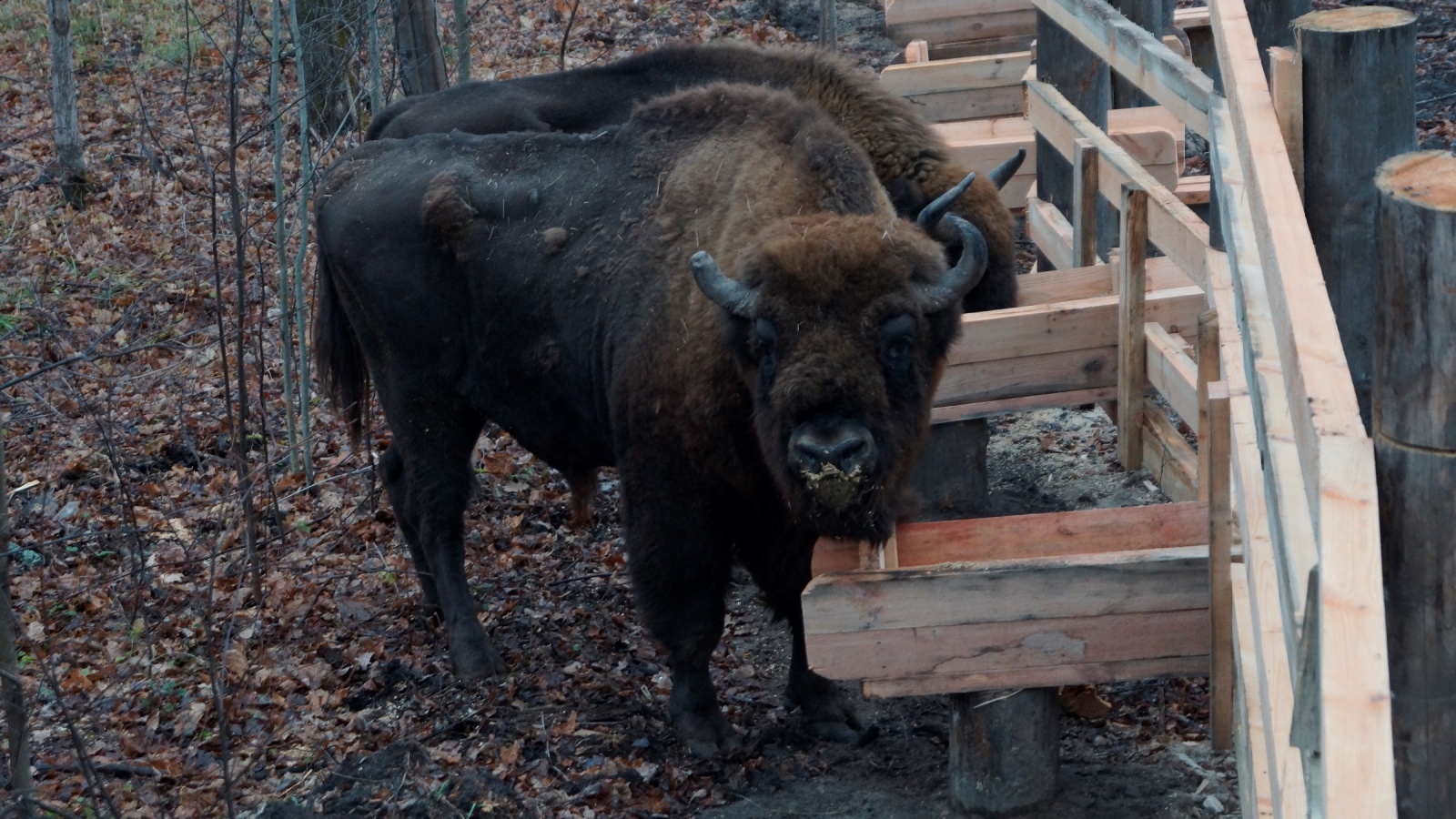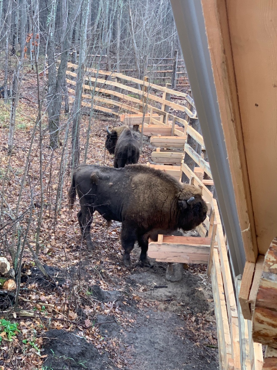 Зубров разместили в обустроенном открытом вольере с деревянной изгородью, где они будут находиться до выпуска в естественную среду. В вольере оборудована площадка с кормовыми устройствами и имеется водоём из которого будут пить новые обитатели заповедника.