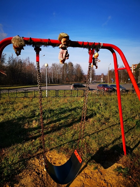 Безумный сосед на улице Силкина обновил декорации качелей