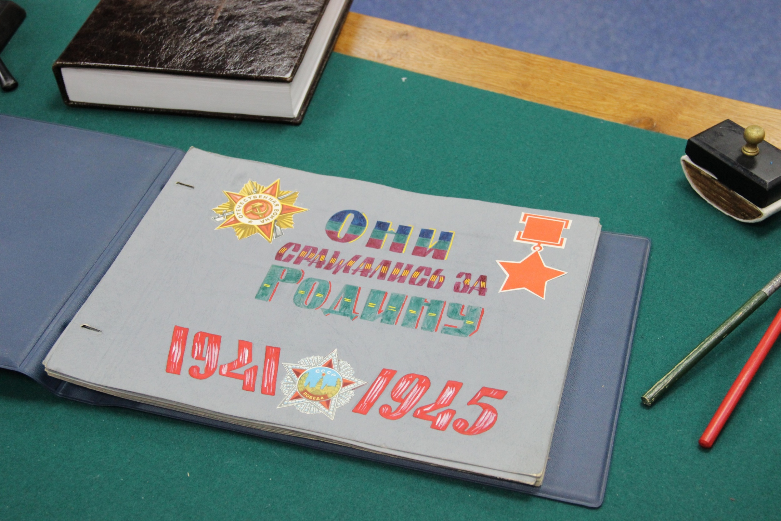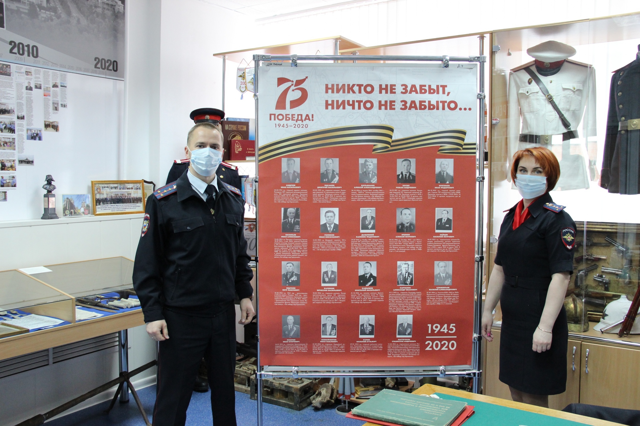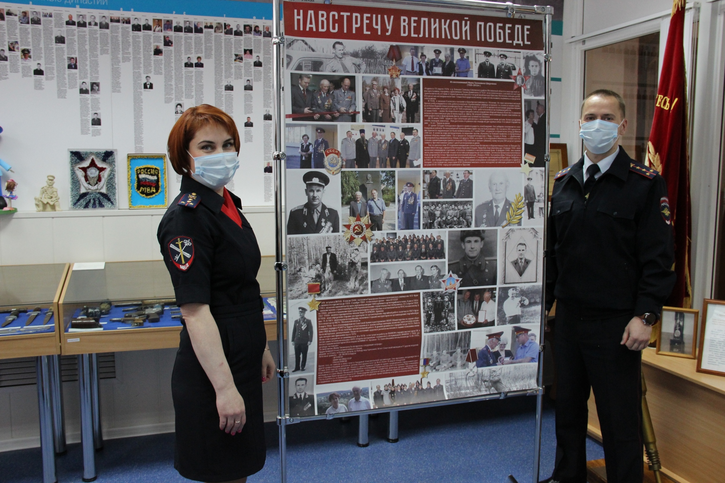 посвящённой сражавшимся за Родину саровским участникам ВОВ, между стендами с фото наших местных ветеранов