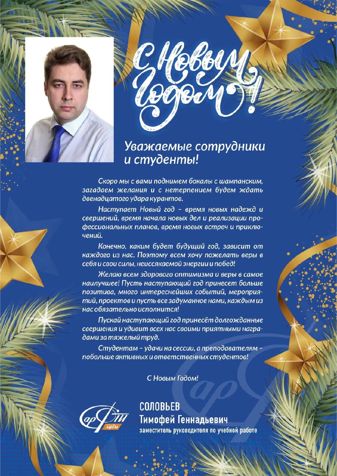 Зам. директора СарФТИ поздравил всех с Новым Годом