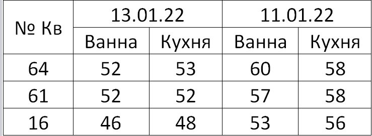 После переустановки (без видимых причин) циркуляционного насоса в подполье дома температура горячей воды в квартирах ещё больше снизилась, а объём сливаемой воды (чтобы получить горячую) увеличился вдвое. Когда же часть жителей вызвала специалиста из сантехнического отдела МУП «Центр ЖКХ» зафиксировать этот факт (11.01.22), то работник этого отдела «прогнал» систему, включил циркуляционный насос на максимальную скорость, и показатели увеличились до допустимой для нас температуры. После этого эти жители измерили температуры горячей воды уже самостоятельно с председателем совета дома (13.01.22). И получилась она такая же, как и до вызова специалиста (к заявлению прилагается таблица с полученными значениями). Тем самым они снизили доплату «за предоставление коммунальных услуг ненадлежащего качества». Это происходит все последние годы. Нам не понятно, зачем начальник сантехнического отдела это делает? Но если возможно так поднять температуру горячей воды (особенно это важно для нижних этажей) во время любых комиссий, почему же начальник сантехнического отдела не зафиксирует это на постоянной основе? Создаётся впечатление, что это происходит умышленно. Также, почему циркуляционный насос не включают на максимальную скорость каждый день (в доме 12 этажей)? А чтобы жители молчали и дали им «спокойно работать», они наловчились их пугать «подачей в суд» за замену полотенцесушителя в ванной (уведомление № 6−1405 от 27.07.19), а также нас предупредили что опять готовятся эти уведомления.