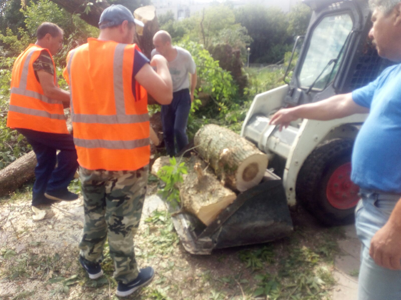 Сотрудники ЖКХ и волонтеры устраняют последствия урагана на улице Некрасова