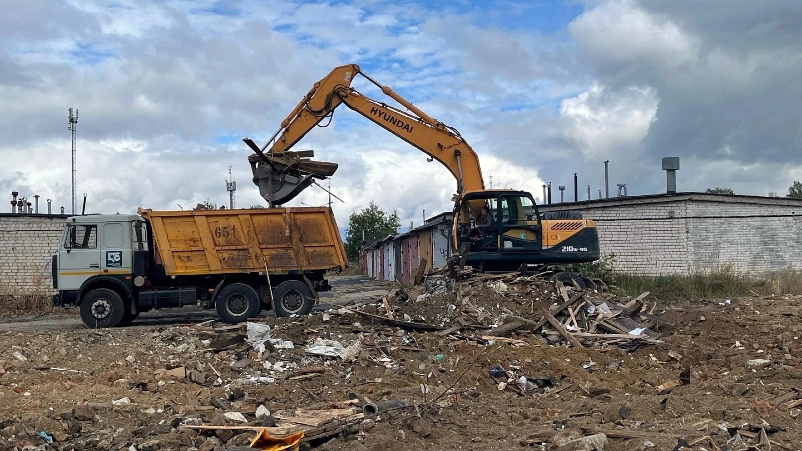 Специалисты ДЭП готовят площадку для возобновления работ по строительству дороги к детской поликлинике на ул. Чапаева. Начали вывоз мусора