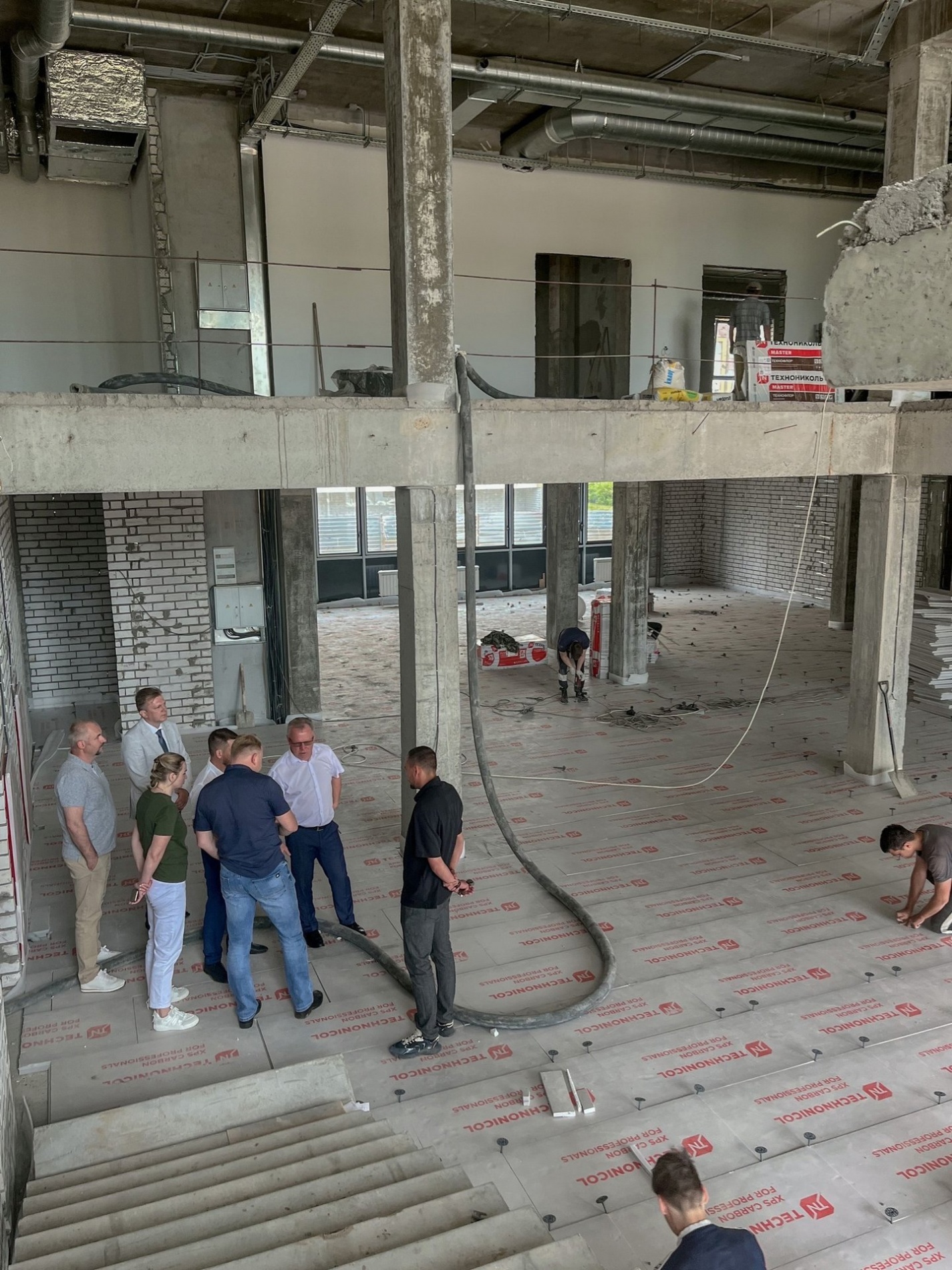 Сейчас готовность объекта составляет 78%: завершены основные строительные работы, выполнена автоматизация систем вентиляции, идет монтаж лестниц и систем электропроводки, ведутся работы по штукатурке стен на этажах и в подвале, проходит заливка полов на втором этаже. На прилегающей территории уже завершены геодезические работы и начаты работы по благоустройству. Кроме того, в ближайшее время подрядчик приступит к внутренней отделке.