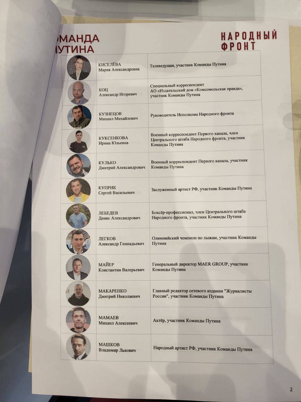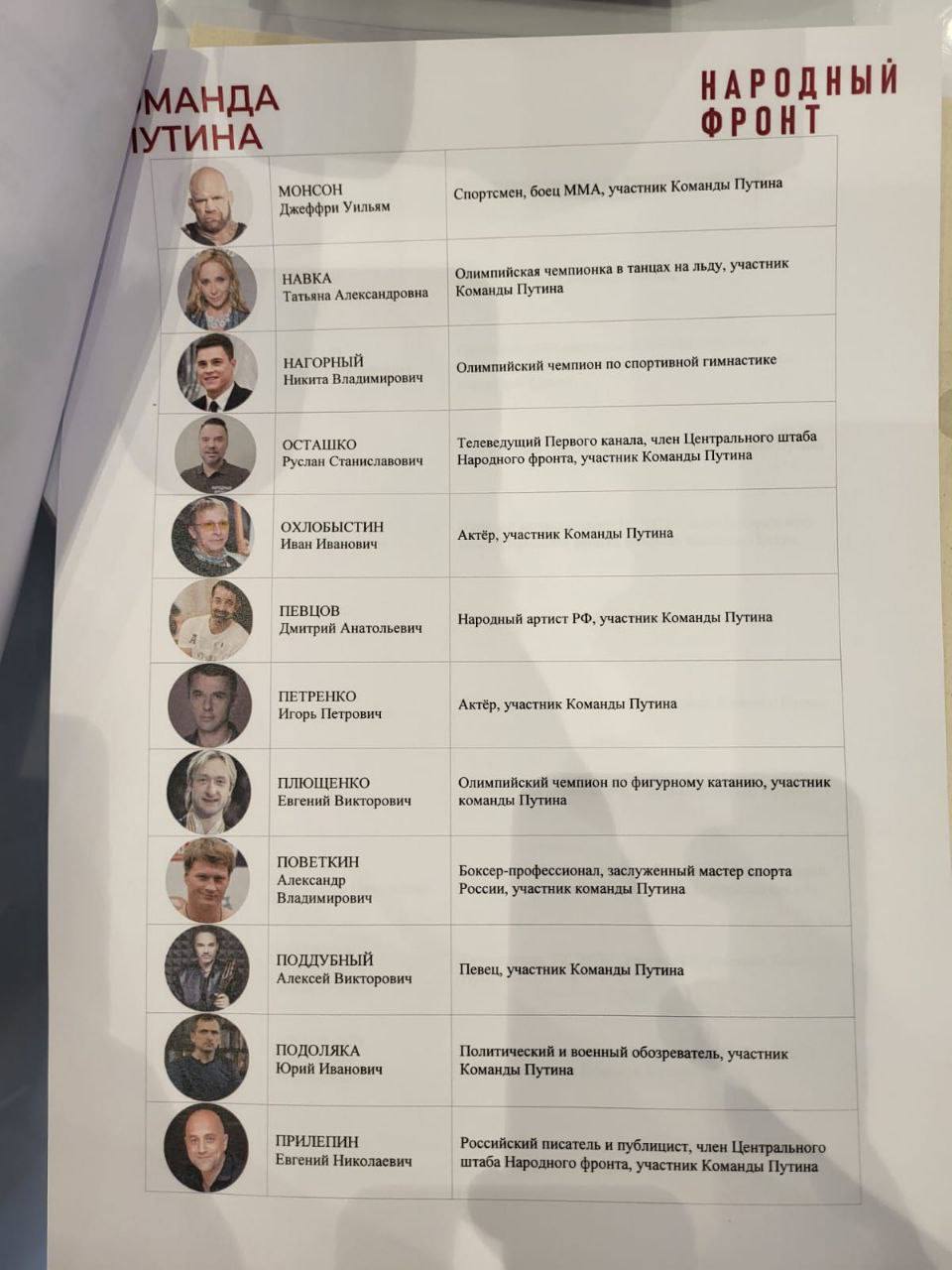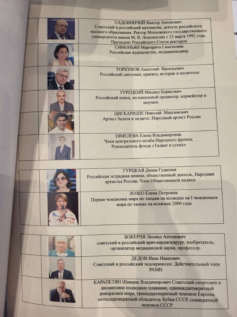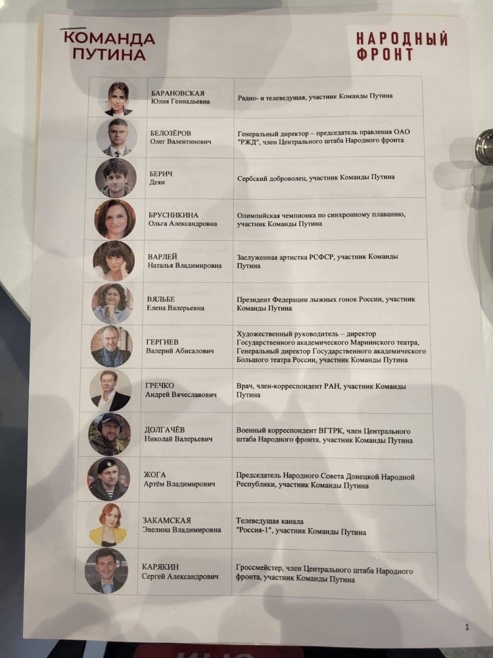Список популярных личностей, оптом купленных в «команду Путина», занимает несколько листов: