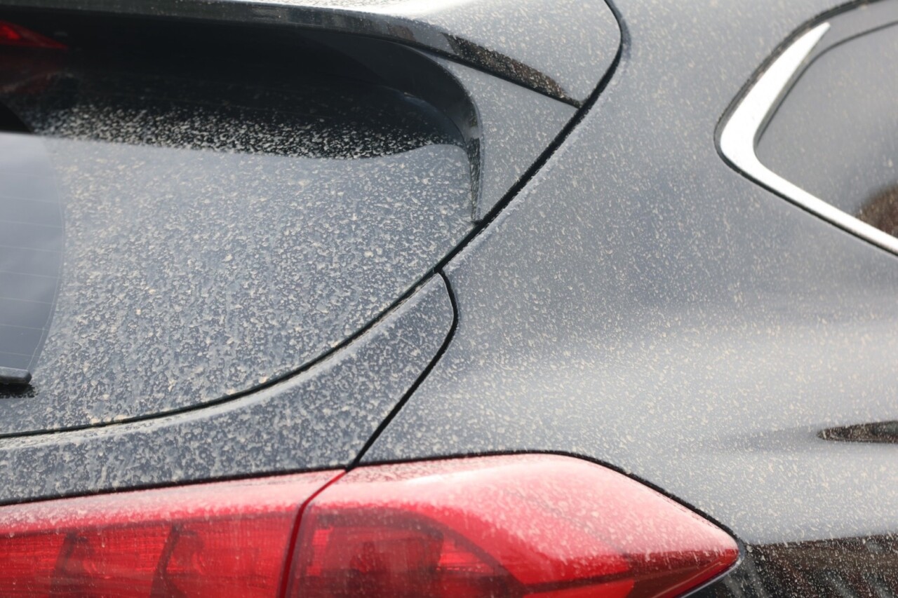 Утром 26 апреля в Саранске прошел дождь, оставивший белый налет на улицах, окнах, автомобилях.