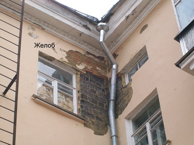 До ремонта фасада дома (со стороны пл. Ленина) с заменой водосточных труб и желобов таких катастрофических протечек НЕ БЫЛО. Все дело в том, что высота прежних желобов была 5−7 см, а у новых 25−30 см. Неужели в нашей полосе интенсивность осадков такова, что в дождь по крышам идет слой воды в 25 см? Исходя из каких предпосылок проектант заложил эти размеры в проект ремонта и создал проблему с которой надо бороться и которая уже имеет серьезные последствия?