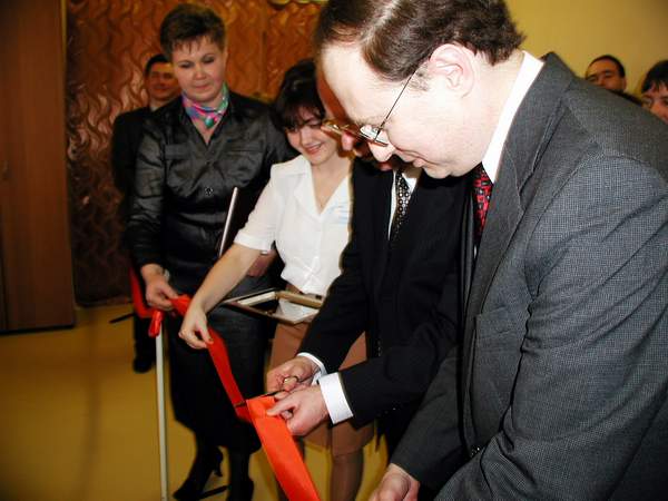 Торжественное обрезание ленточки. :-) Посол – это все ерунда, вот девушка в белом куда больше внимания привлекает...